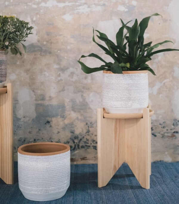 Soporte macetas madera artesanalSupport pots fleurs bois moyen - Casa Atlântica