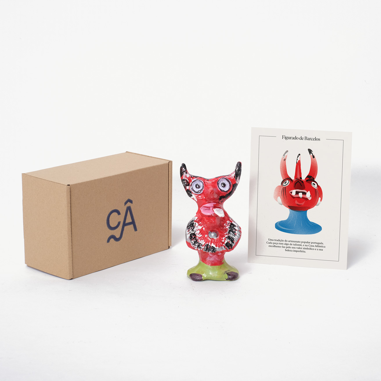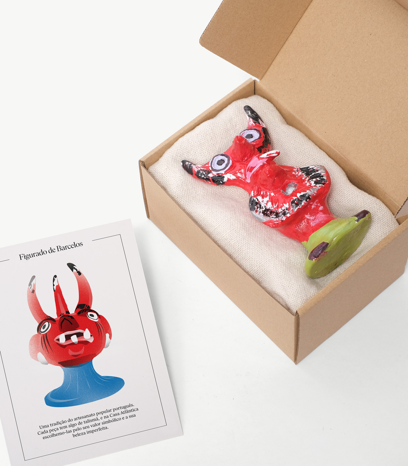 Elle comprend également une carte illustrée conçue par nos soins, avec une brève description en portugais qui rend hommage à la créativité débordante de ces figurines et à la beauté imparfaite du fait main.